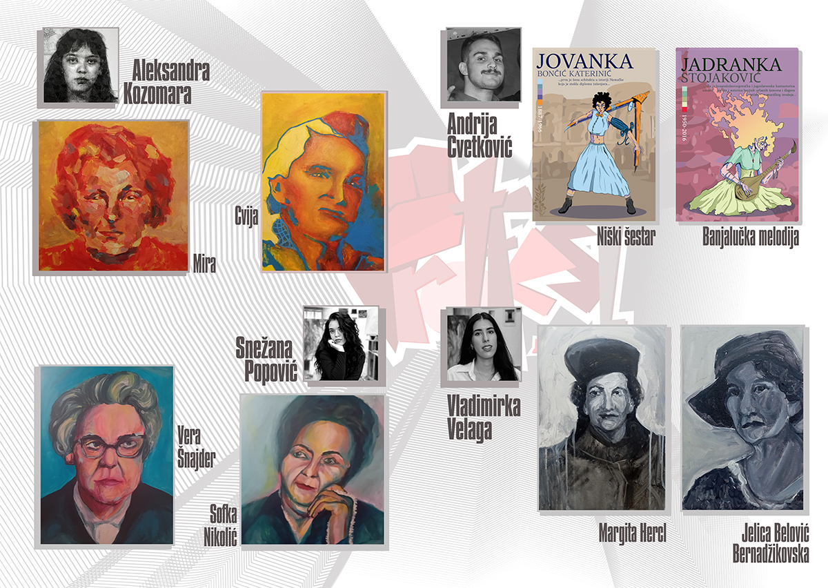 Na slikama osam mladih umjetnika iz Bijeljine i Banjaluke našli su se portreti: Vere Šnajder, prve naučnice matematičarke u BiH, Sofke Nikolić, prve žene rekorderke u prodaji gramofonskih ploča u Evropi i najpoznatije pjevačice narodne muzike u prvoj polovini 20. vijeka, Margite Hercl, specijalistkinje za dječije bolesti i borkinje za emancipaciju žena i njihova prava, Cvije Cice Trišić, istaknute antifašistkinje i aktivistkinje u borbi za ravnopravan položaj žena u političkom i javnom životu BiH, i drugih znametnih žena iz istorije Bosne i Hercegovine čiji su rad i postignuća, nažalost, vrlo često zanemareni, nedovoljno vrednovani, pa čak i zaboravljeni.