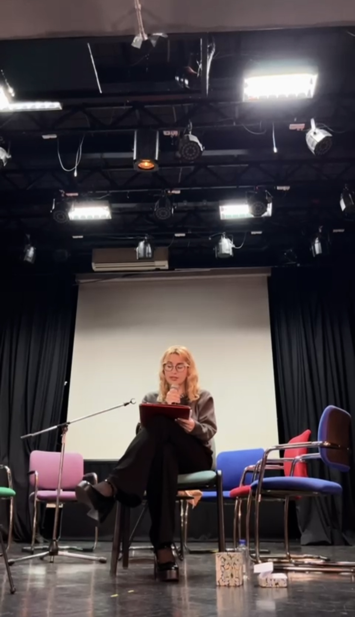 Đana Kurbegović (22) završila je segment ličnih priča glasom koji spaja nespojivo- bunt i nježnost. Kroz kontrast oca borca i majke koja je rat preživjela u podrumu, Đana nam pokazuje kako se muška trauma često priznaje, dok se žensko iskustvo prešućuje, potiskuje i umanjuje- pa čak i od strane samih žena. Odrasla je brzo, jer su njeni roditelji, kojima je djetinjstvo bilo oduzeto u ratu, često nesvjesno tražili od nje da bude snažna umjesto da joj pruže sigurno utočište. Đana kaže kako ne moramo tišinom prikivati ta iskustva, jer istinsko iscjeljenje počinje onda kada sebi damo pravo na glas i autentičnost.